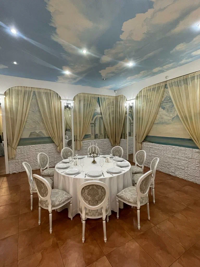 Просторный зал. Возможность организовать различные виды рассадки Ваших гостей. В зале имеется презентационный экран и проектор.